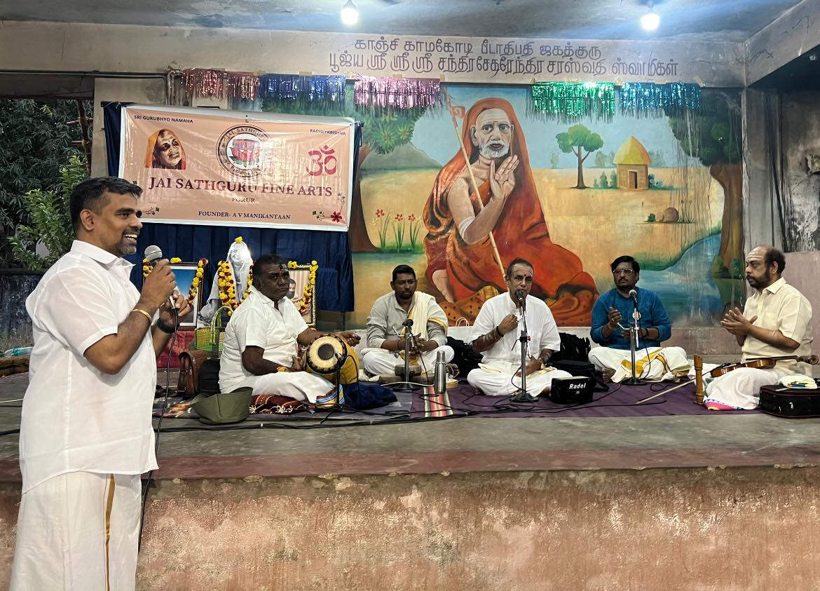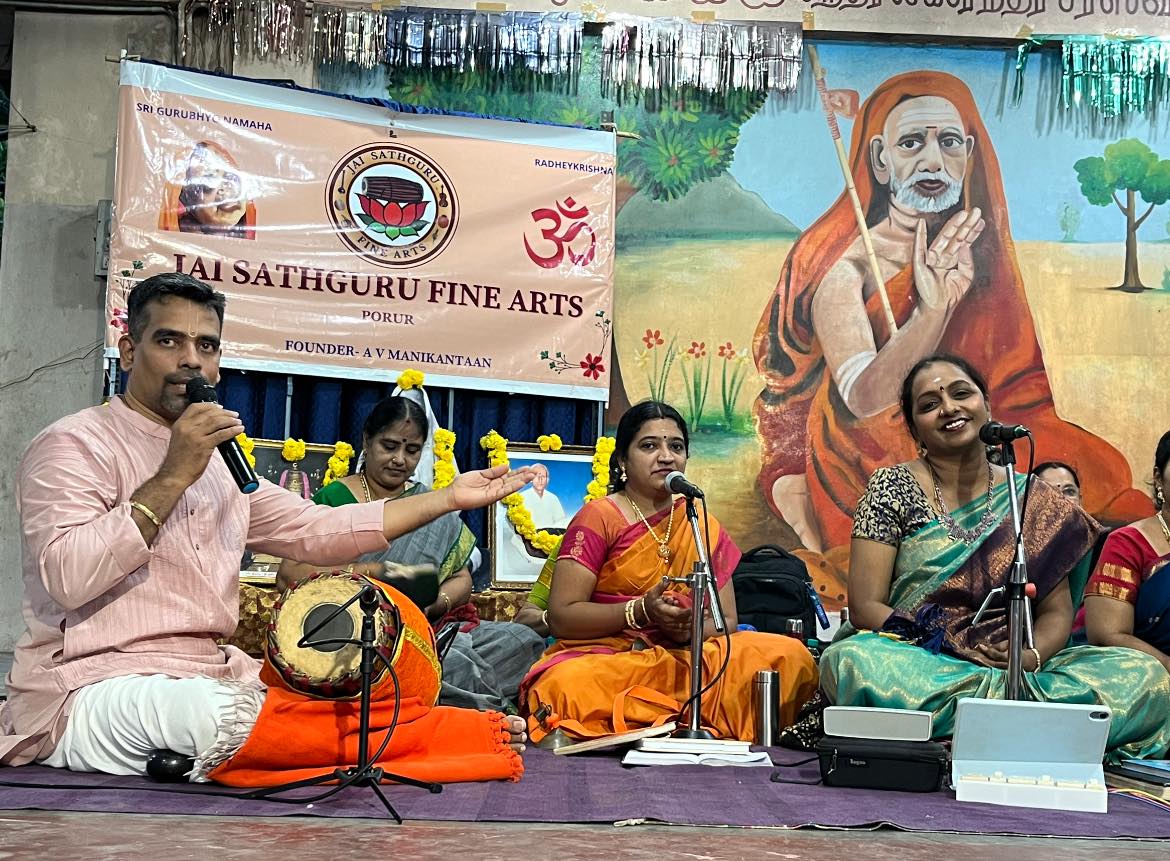 ஜெய் சத்குரு ஃபைன் ஆர்ட்ஸ் நடத்திய கார்த்திகை மாத சிறப்பு நிகழ்ச்சியில் கலந்து கொண்டு பாடுகின்ற பாக்கியம் அடியேன் பெற்றது மிக்க மகிழ்ச்சி. மிக சிறப்பான முறையில் அன்பு தம்பி A V மணிகண்டன் நடத்தி வருகிறார். மென்மேலும் பல ஆயிரம் நிகழ்ச்சி நடத்த குருநாதர் அவருக்கு துணை நிற்க பிரார்த்திக்கிறேன்.